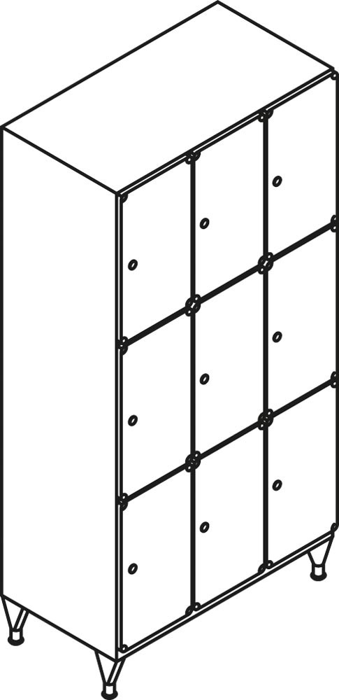 Fächerschrank, 3x3 Fächer, Abt. B 400 mm, Selbstbelüftungskonzept, BxTxH 1200x525x1980 mm, RAL 7035/3003