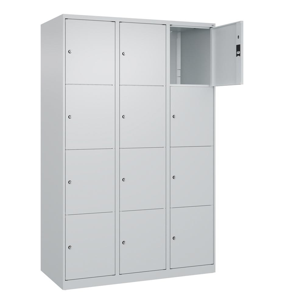 Fächerschrank, BxTxH 1200x500x1850 mm, 3x4 Fächer, Abt.B 400 mm, bodenstehend, Schloss, glatte Türen, RAL 7035