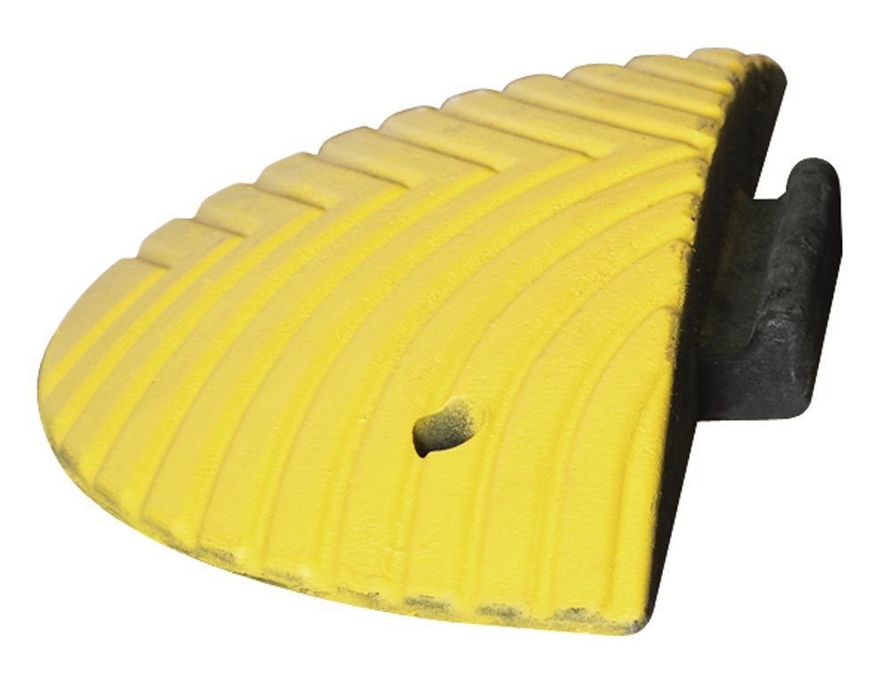 Fahrbahnschwellen, aus wiederaufbereitem Kunststoff, für Passiergeschwindigkeit 20 km/h, Abschlußelement mit Zapfen, Farbe gelb, BxLxH 200x400x50 mm E841232