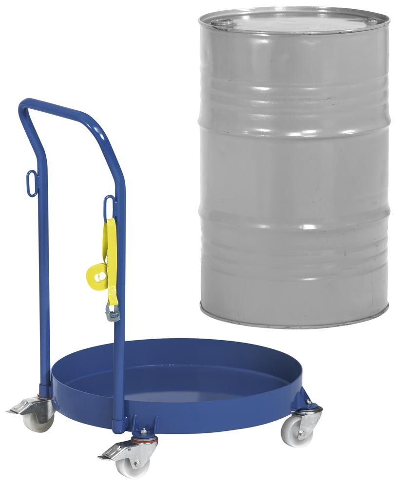Fassroller für 200-l-Fässer, geschlossene Stahlblechwanne öldicht, Schiebebügel, Traglast 250 kg, RAL 5007 brillantblau E843853