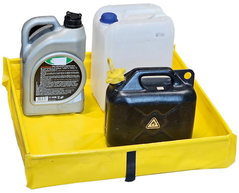 ∙ Schnell, flexibel und einfach einzusetzen ∙ Zusammenrollbar, mit Klettverschluß zur Befestigung ∙ Glasfaserverstärkt für hohe Stabilität ∙ Für den Einsatz im Innen- und Außenbereich geeignet ∙ Ideal für Wartungsarbeiten, z.B. für das Reinigen von öligen Werzeugen und Maschinenteilen · Ideal zur Lagerung von Kleingebinden