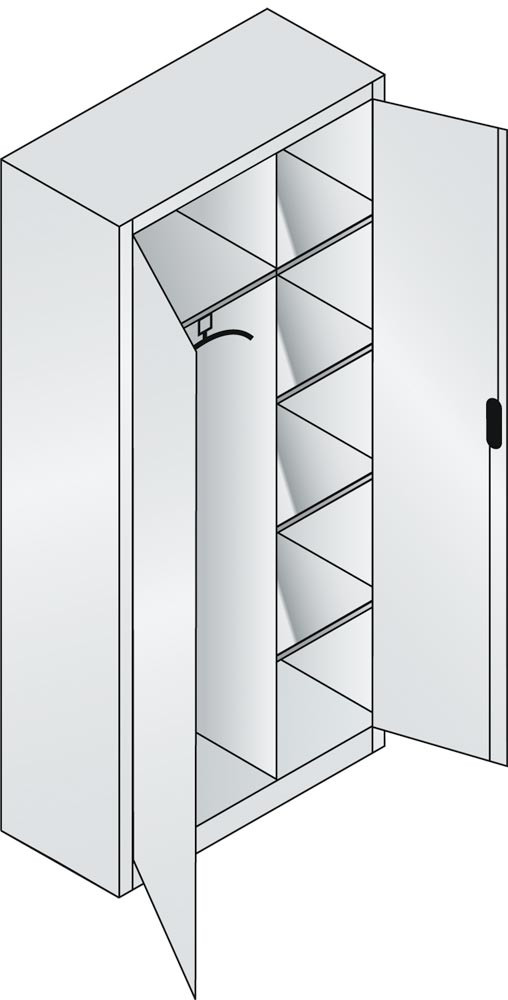 Flügeltürenschrank, BxTxH 930x500x1950 mm, 1 Hutboden, 1 Kleiderstange, RAL 7035 lichtgrau E856834
