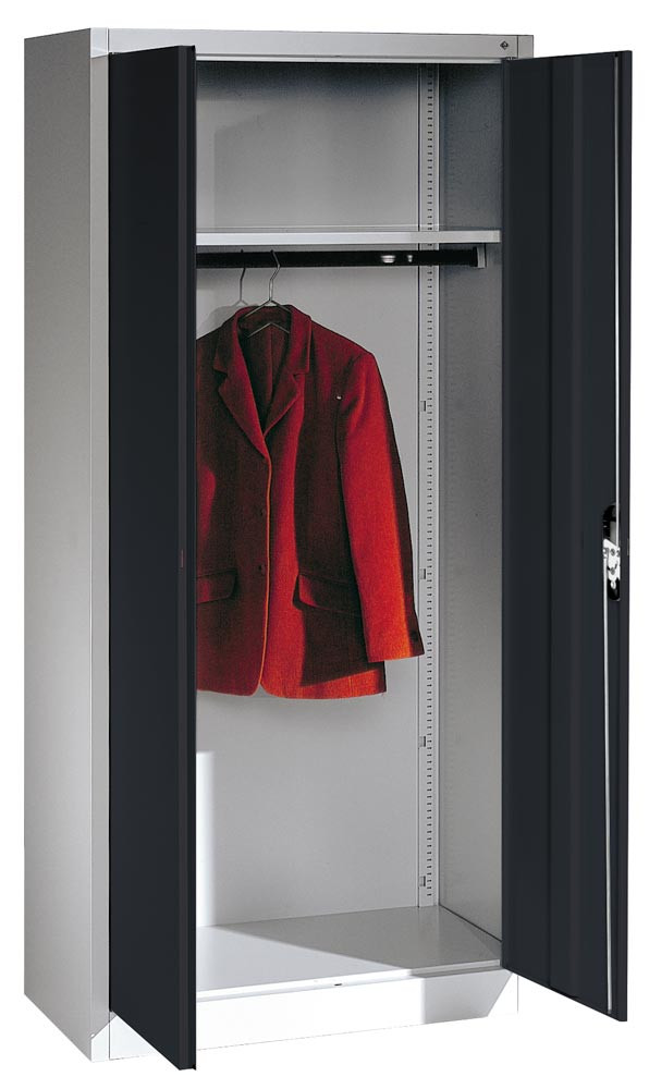 Flügeltürenschrank, BxTxH 930x500x1950 mm, 1 Hutboden, 1 Kleiderstange, RAL 7035/7021 lichtgrau/schwarzgrau