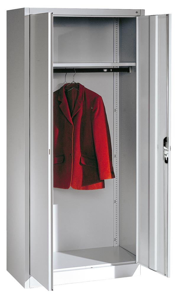 Flügeltürenschrank, BxTxH 930x500x1950 mm, 1 Hutboden, 1 Kleiderstange, RAL 7035 lichtgrau