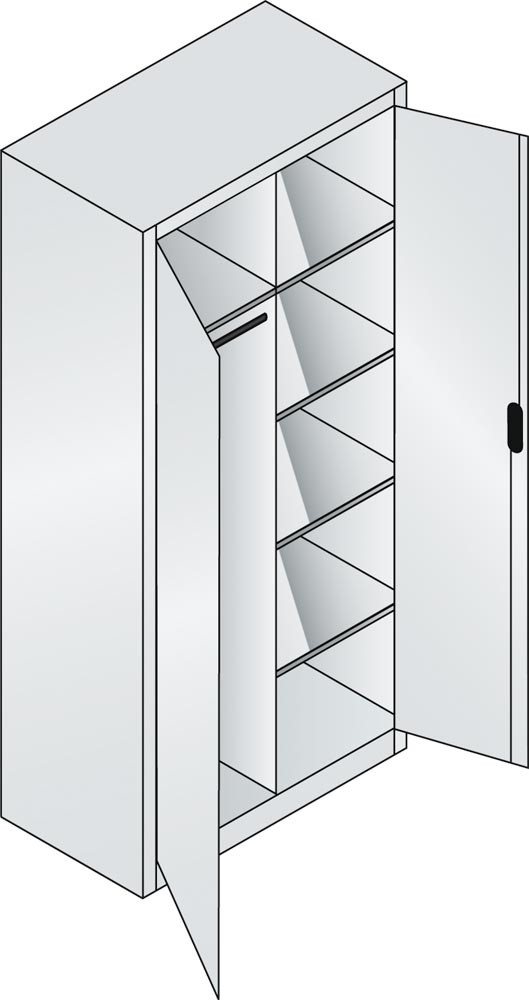 Flügeltürenschrank, BxTxH 930x500x1950 mm, 1 Hutboden, 1 Kleiderstange, RAL 7035 lichtgrau E856834