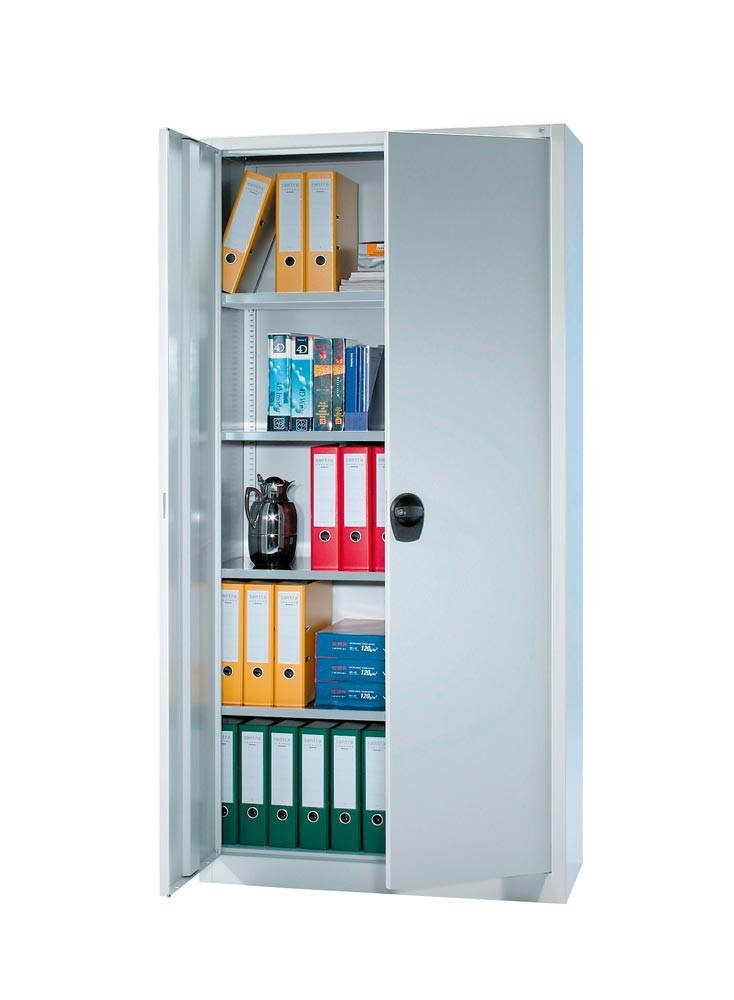 Flügeltürenschrank, BxTxH 935x400x1950 mm, 4 lackierte Fachböden, RAL 7035 lichtgrau