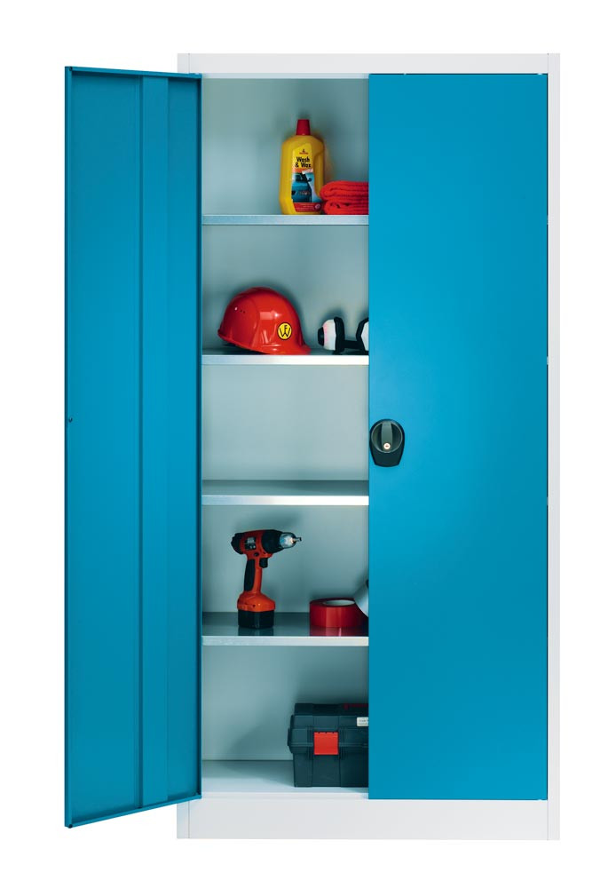 Flügeltürenschrank, BxTxH 950x420x1950 mm, 4 Böden, RAL 7035/5007 E1991070