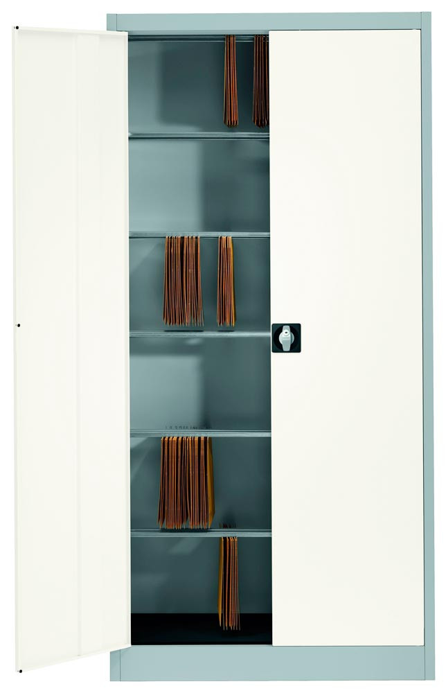 Flügeltürenschrank, BxTxH 950x420x1950 mm, 6 Pendelstangen Leitz/Elba, 42 kg Traglast/Pendelstange, RAL 9010 reinweiß E1982171