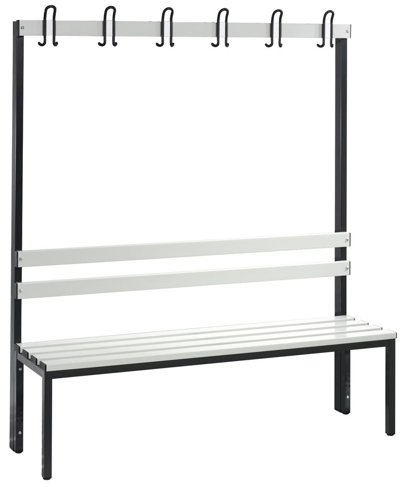 Doppelseitige Garderobenbank, Kunststoffleisten, ohne Schuhrost, TxH 756x1710 mm, Länge 1000 mm, RAL 7021 E868980