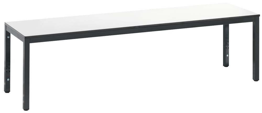 Garderobenbank, Sitzfläche HPL-Platte weiß, BxTxH 1500x353x401 mm, 4 Füße, Gestell RAL 7021