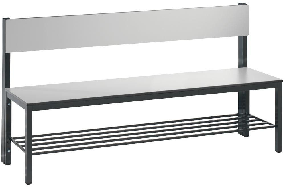 Garderobenbank mit Rückenlehne, Sitzfläche HPL-Platte weiß, BxT 1000x407 mm, Sitzhöhe 401 mm, 4 Füße, Gestell RAL 7021