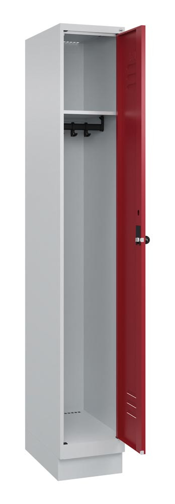 Garderobenschrank, BxTxH 300x500x1950 mm, 1 Abteil, B 300 mm, Sockel, Drehriegel, Farbwahl