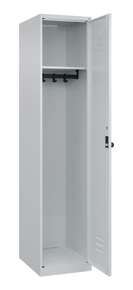 Garderobenschrank, BxTxH 400x500x1850 mm, 1 Abteil, B 400 mm, Bodenstehend, Drehriegel, RAL 7035 E6471452
