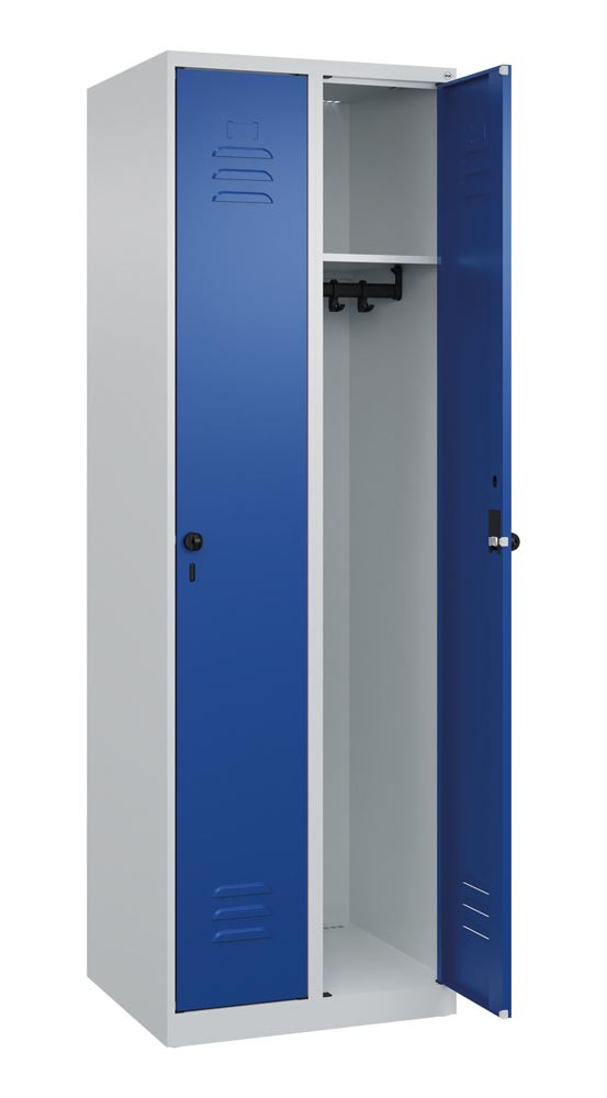 Garderobenschrank, BxTxH 400x500x1850 mm, 1 Abteil, B 400 mm, Bodenstehend, Drehriegel, RAL 7035/5010 E6471453