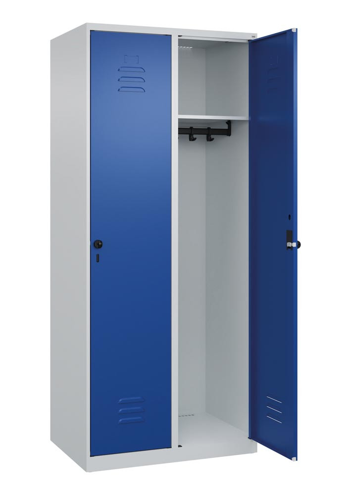 Garderobenschrank, BxTxH 800x500x1850 mm, 2 Abteile, B 400 mm, Bodenstehend, Drehriegel, RAL 7035/5010