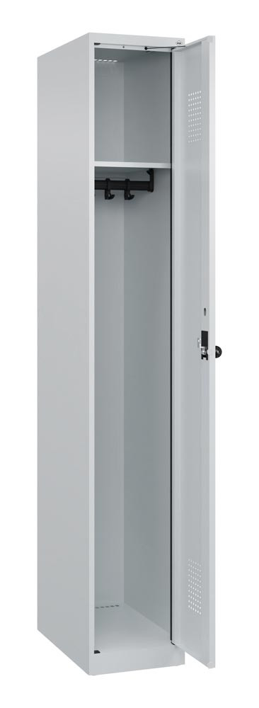 Garderobenschrank, bodenstehend ,1 Abteil, Abt. B 300 mm, Drehriegel, BxTxH 300x500x1850 mm, RAL 7035 E6476528