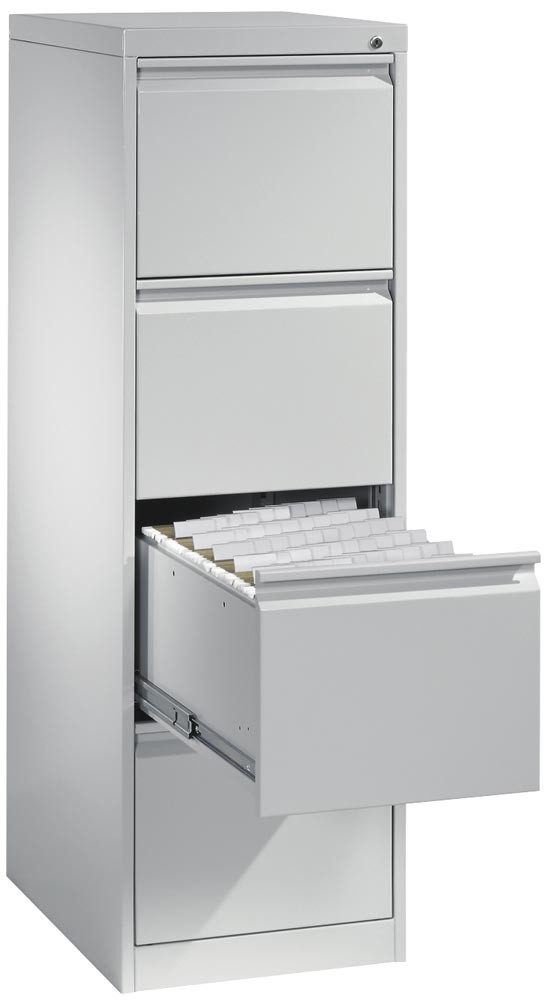 Hängeregistraturschrank, BxTxH 433x590x1357 mm, einbahnig, 4 Schubladen, Griffleiste, RAL 7035 lichtgrau E851568