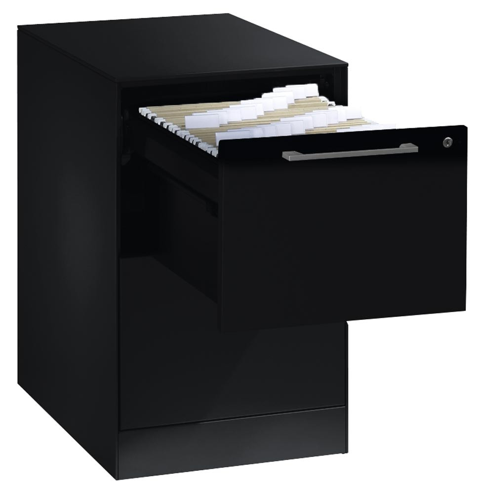 Hängeregistraturschrank, BxTxH 440x600x698 mm, einbahnig, 2 Schubladen, Bügelgriff, RAL 7021 schwarzgrau