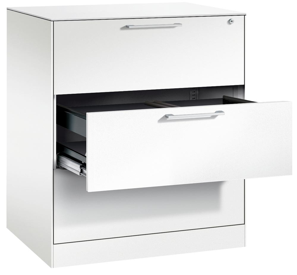Hängeregistraturschrank, BxTxH 800x600x998 mm, zweibahnig, 3 Schubladen, Bügelgriff, RAL 9016 verkehrsweiß