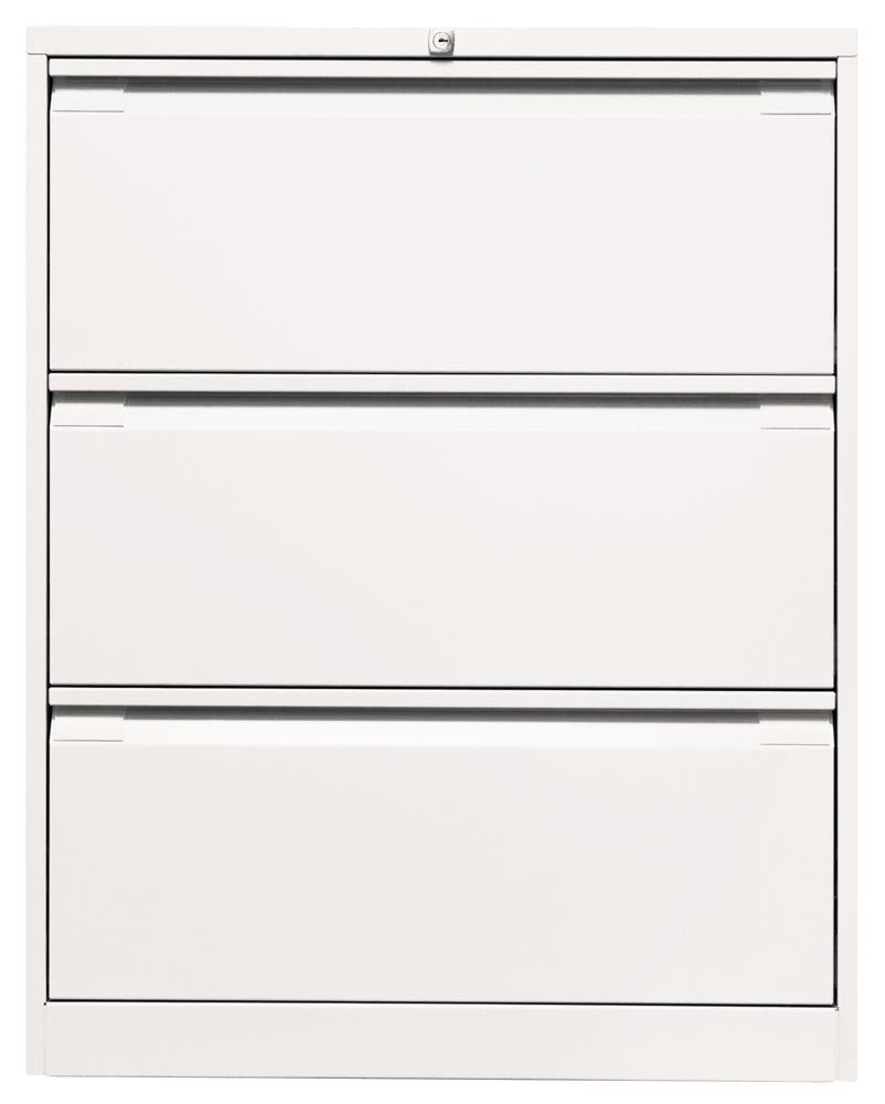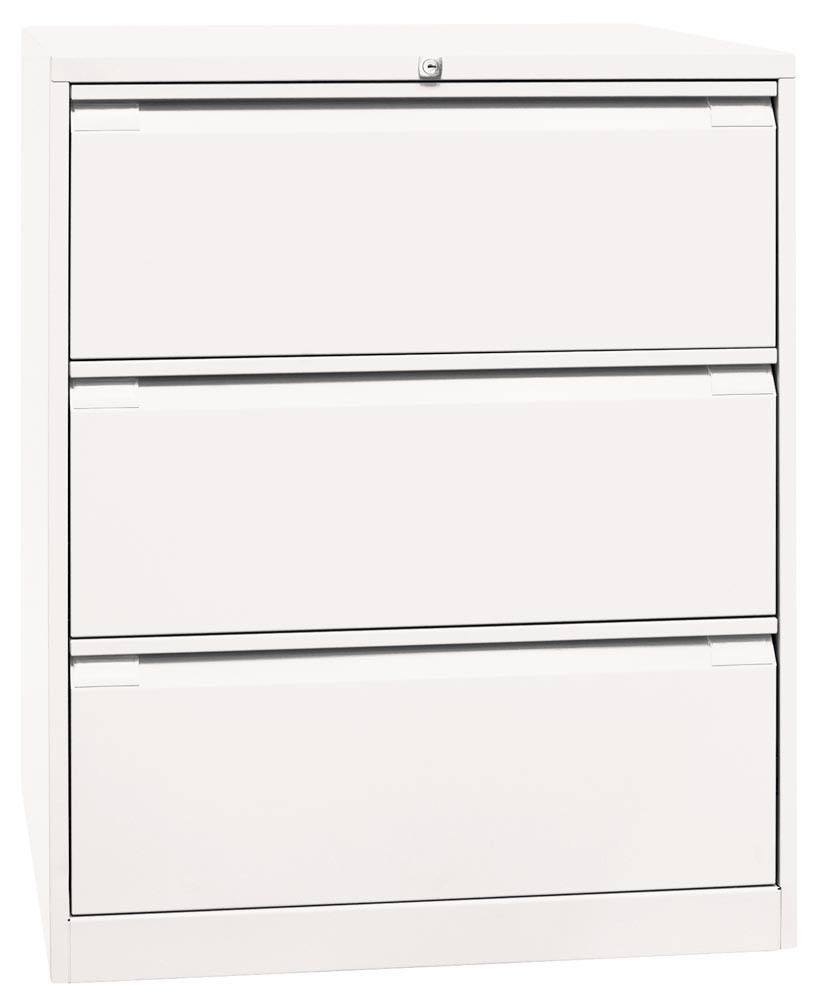 Hängeregistraturschrank, BxTxH 800x622x1016 mm, doppelbahnig, 3 Schubladen, Griffleiste, verkehrsweiß
