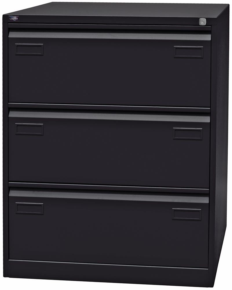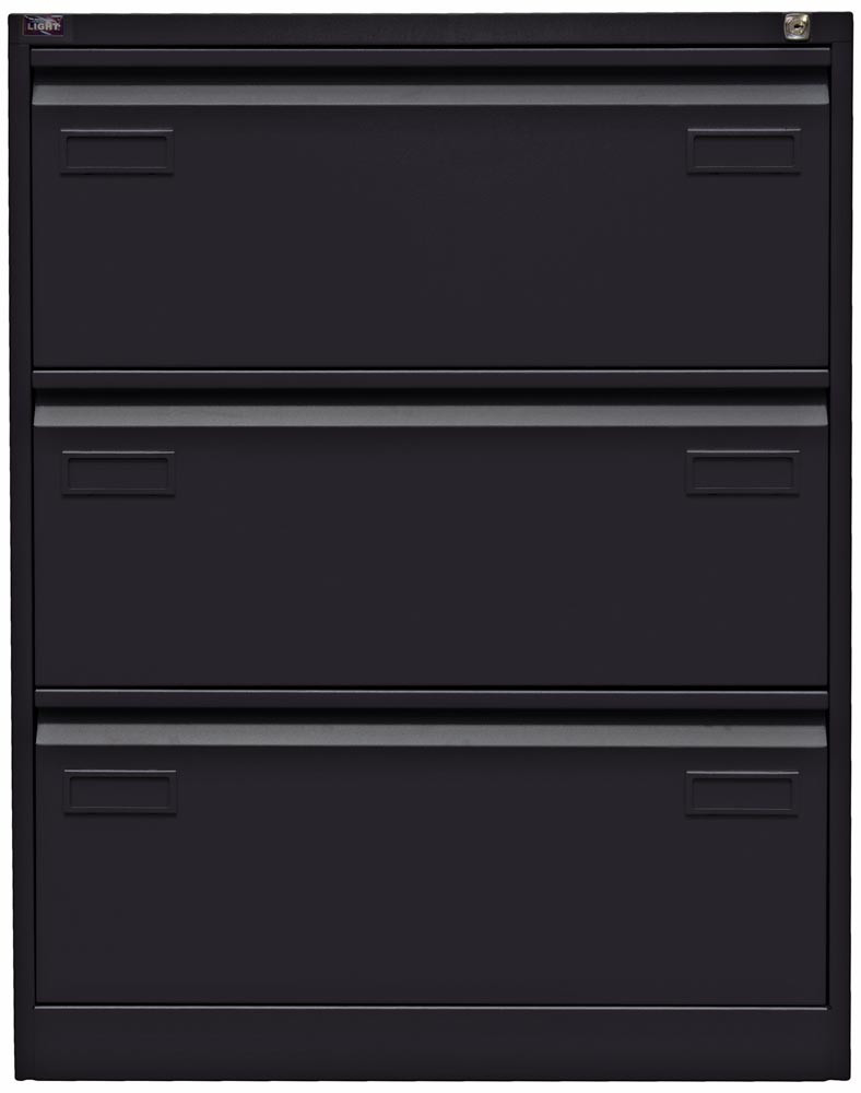 Hängeregistraturschrank LIGHT, BxTxH 800x622x1016 mm, doppelbahnig, 3 Schubladen, Griffleiste, schwarz