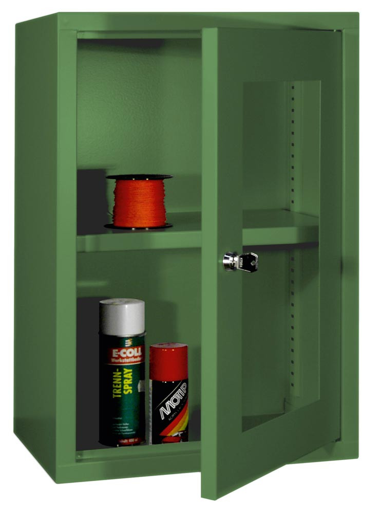 Hängeschrank, 1 Sichtfenstertür, Rückwand glatt, 1 verstellbarer Boden, Zylinderschloss BxTxH 400x300x600 mm, RAL 5015 E869478