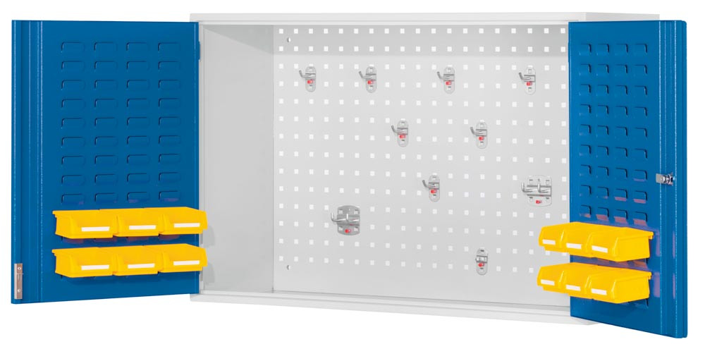 Hängeschrank, Rückwand mit Lochplatten, Türinnenseiten mit Schlitzpl., BxTxH 920x335x620 mm, RAL 7035/5010