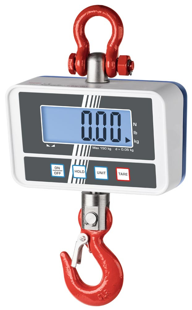 · Nicht eichfähig · Hochauflösendes Display · Für untere bis mittlere Lastbereiche · Hohe Mobilität dank Batteriebetrieb und kompakter Bauweise · Stabile und robuste Konstruktion für den dauerhaften Einsatz in industrieller Umgebung · Die Waagen entsprechen den Anforderungen der Norm EN 13155 (lose Lastaufnehmer) und EN 61010-1 (Elektrische Sicherheit) · Haken mit drehbarem Sicherheitsverschluss
