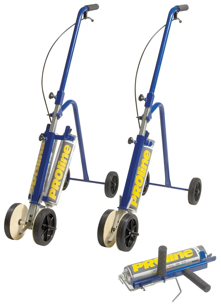 ∙ Im Innen- und Außenbereich einsetzbar ∙ Keine Vorbereitungen - die Geräte sind sofort einsatzbereit · Kinderleichte Bedienung ∙ Stellschraube an den Rädern für die Verstellung der Strichbreite · Rasches Arbeiten ca. 10 m pro Minute