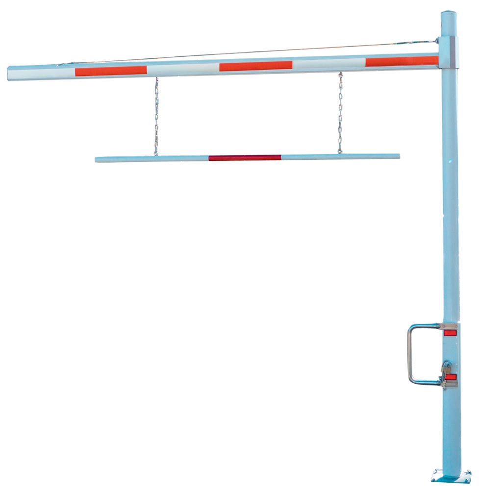 Höhenbegrenzer drehbar, Sperrweite 4,5 m, m.Verstellb. Durchfahrtshöhe bis 2,8 m, Stützen verzinkt 101,6x2,9 mm, Sperrbalken Alu 86x46 mm, z. Dübeln