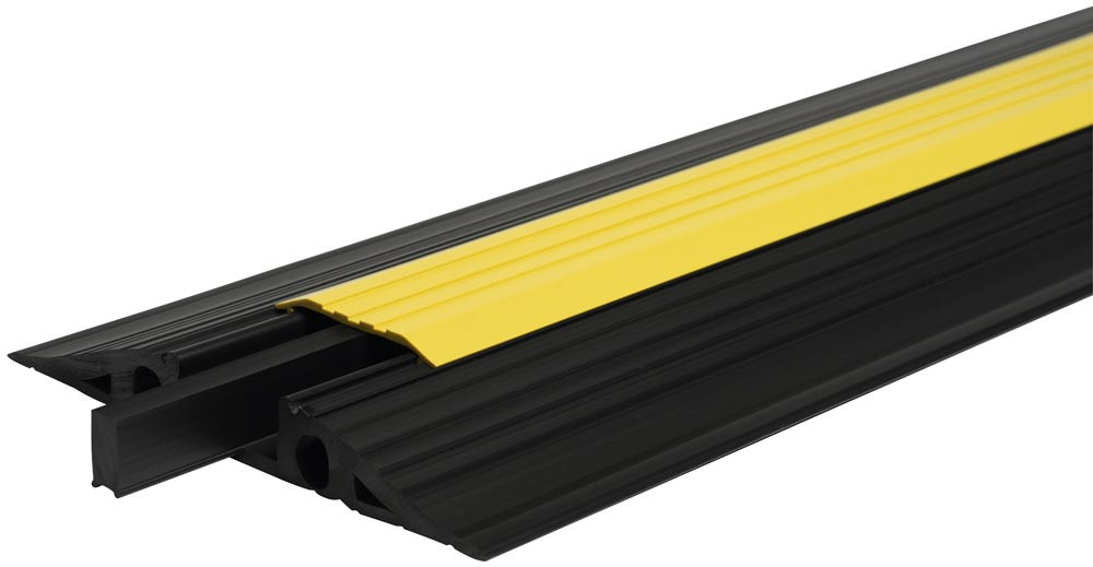 Kabelbrücke aus PVC in schwarz, LxBxH 1000x350x50 mm, inkl. Mittelsteg und Deckel in gelb, VE 6 Stück