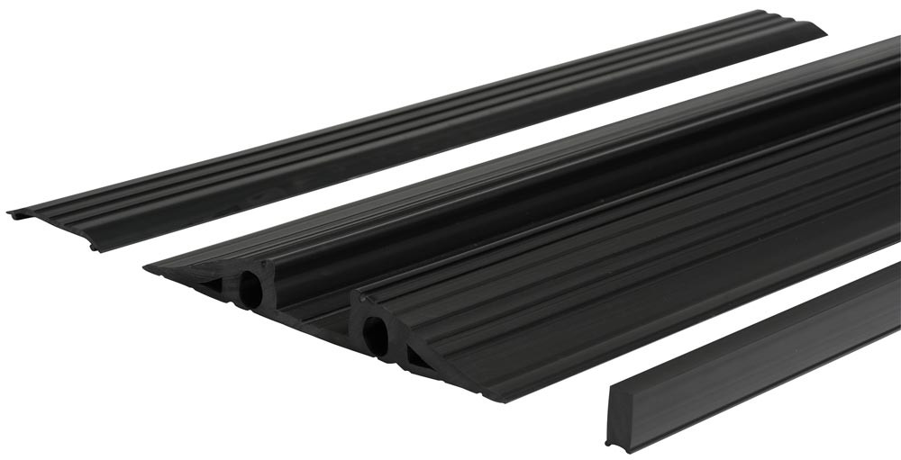 ∙ Zum sicheren Überfahren von Kabeln, Rohren oder Schläuchen etc. ∙ Dank eines herausnehmbaren Mittelstegs sowie eines abnehmbaren und trittfesten Deckels können die Brücken individuell an jede Situation angepasst werden ∙ L x B x H 1000 x 350 x 50 mm ∙ Innenkammer: 2 x 25 x 38 mm vergrößerbar auf 70 x 38 mm ohne Mittelsteg ∙ Außenkammer: 2 x Ø 25 mm ∙ Gewicht 10 kg/Stück ∙ Farbe der Kabelbrücke: schwarz