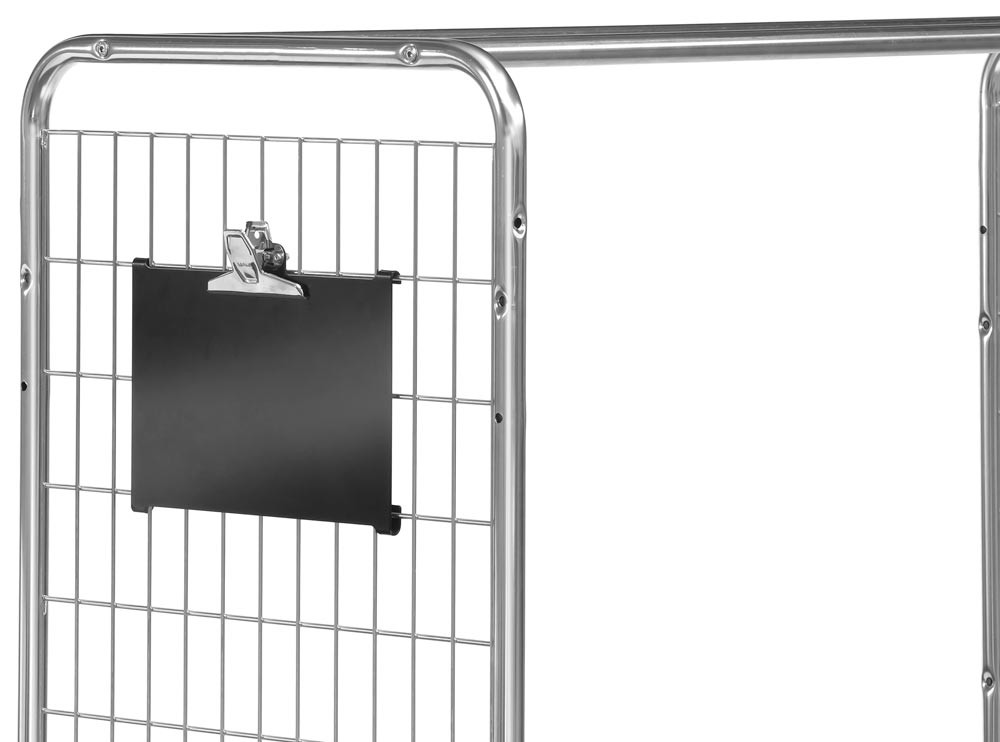 · Aus Stahlblech · Pulverbeschichtet in mattschwarz · In Stirnwand einhängbar · Mit Kreide beschreibbar · Mit Papierklemme · Nutzfläche B x H 330 x 210 mm