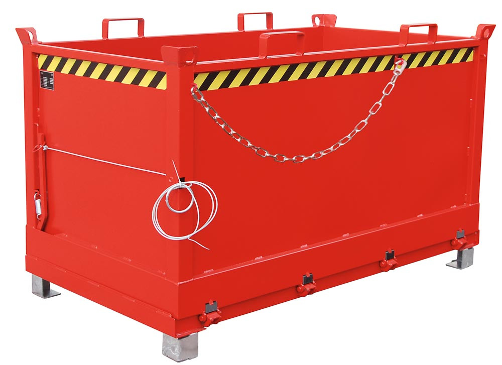 Klappbodenbehälter, Gummifederung, LxBxH 1040x1845x1145 mm, Vol. 1,5 cbm, Traglast 1500 kg, lackiert RAL 3000 feuerrot
