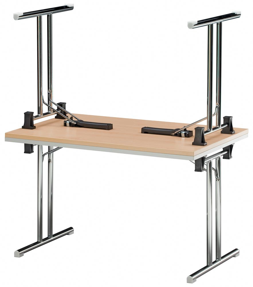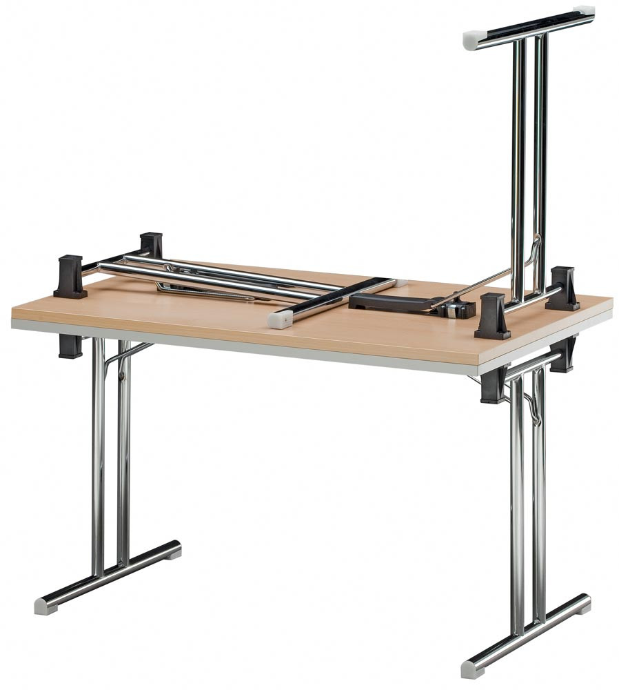Klapptisch, BxTxH 1400x700x720 mm, T-Fuß-Gestell verchromt, gerade Kufen, melaminharzbesch. Platte buche E6476470