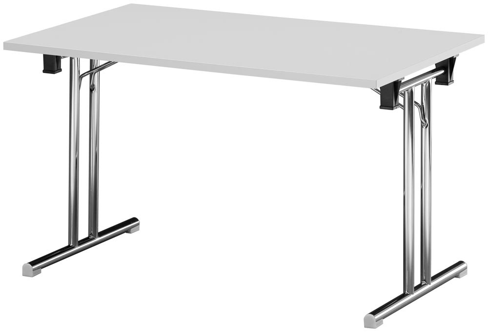 Klapptisch, BxTxH 1200x700x720 mm, T-Fuß-Gestell verchromt, gerade Kufen, melaminharzbesch. Platte lichtgrau