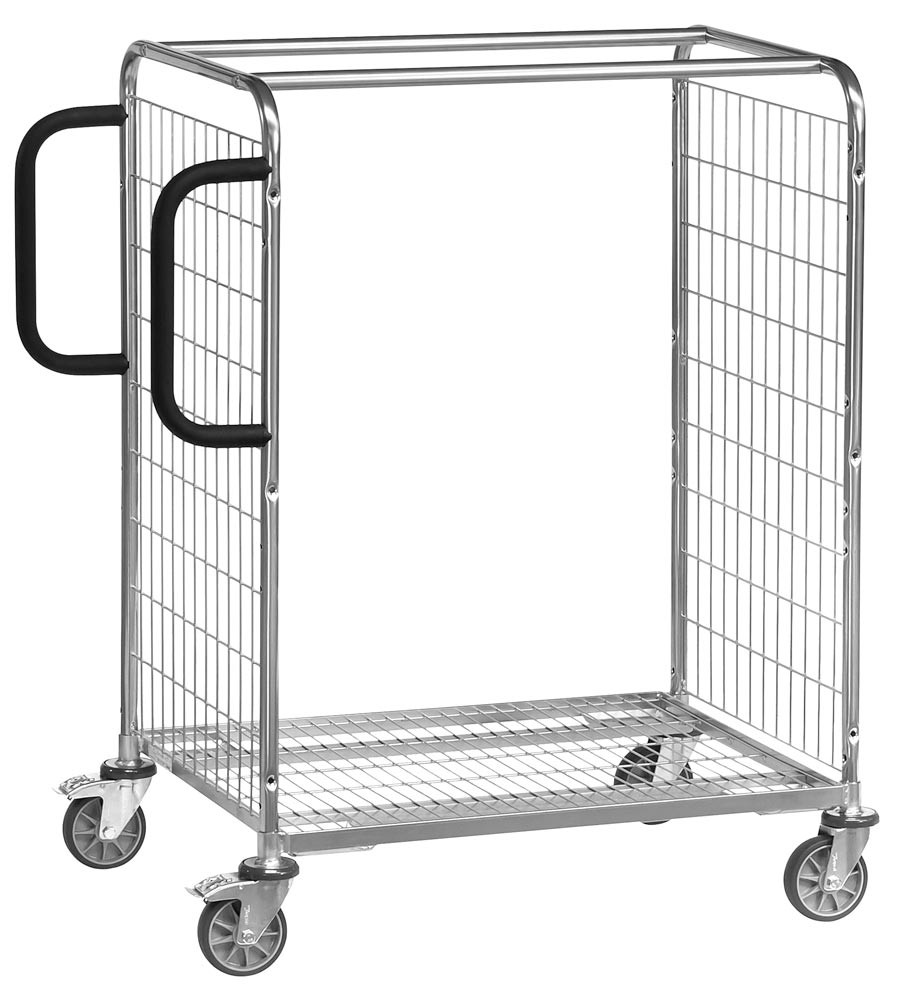 Kommissionierwagen, 2 Gitterwände, ohne Böden, Ladefläche LxB 850x610 mm, Außenmaße LxBxH 1091x690x1625 mm, Traglast 300 kg, verzinkt E6011127