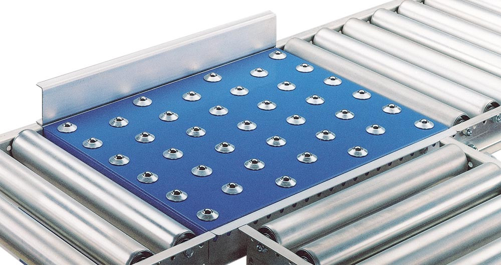 Zum Einsatz an Verteiler- oder Drehstationen und an Kreuzungspunkten von Rollen oder Röllchenbahnen. Das Fördergut muß einen ebenen, stabilen Boden haben und kann leicht in jede Richtung bewegt werden.
