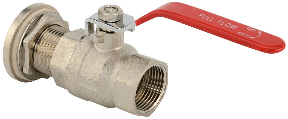 Messingarmatur, Einschraubgewinde und Auslaufhahn Messing vernickelt, Gewindegröße 1 Zoll, montiert an GFK-Behälter E878593