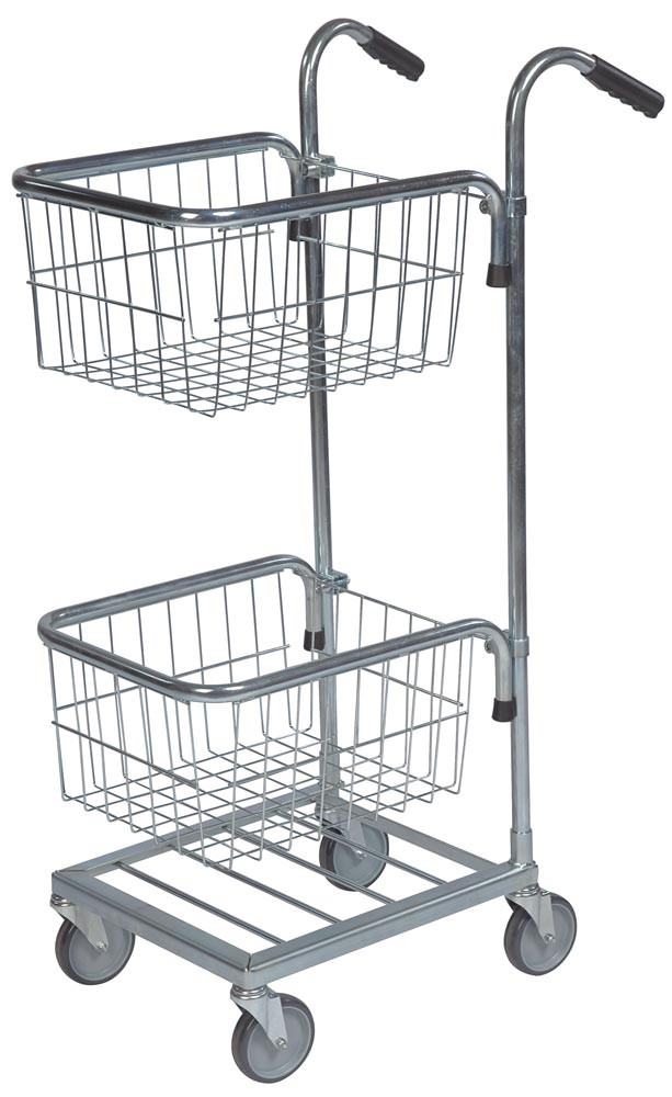 Minitransportwagen, BxTxH 660x385x1090 mm, 2 Körbe, verzinkt, Traglast 35 kg, 4 Lenkrollen