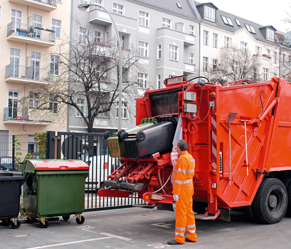 Nach DIN EN 840-1/-5/-6 ∙ Hergestellt aus HDPE ∙ RFID-Chipnest ∙ Verrottungsfest ∙ Frost- und hitzebeständig ∙ Leicht zu reinigen ∙ Zwei laufruhige, vollgummibereifte Räder (Ø 200 mm) ∙ Rohrachse aus vergütetem, verzinktem Stahl mit Radbefestigungs-Nuten ∙ Bei den dargestellten Werten handelt es sich um einen gerundeten Durchschnitt basierend auf der Standardausführung, die tatsachlichen Werte können produktions- und spezifikationsbedingt abweichen.