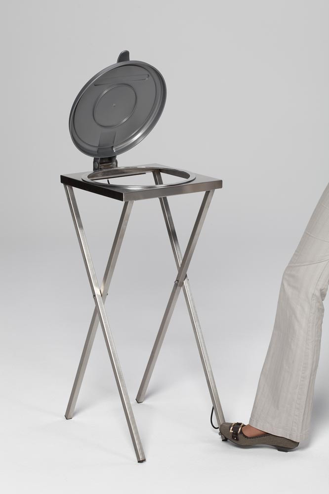 Müllsack-Scherenständer, Edelstahl, für 120-l Säcke, BxTxH 400x450x900 mm, stationär, mit Fußpedal, Kunststoff-Deckel silber