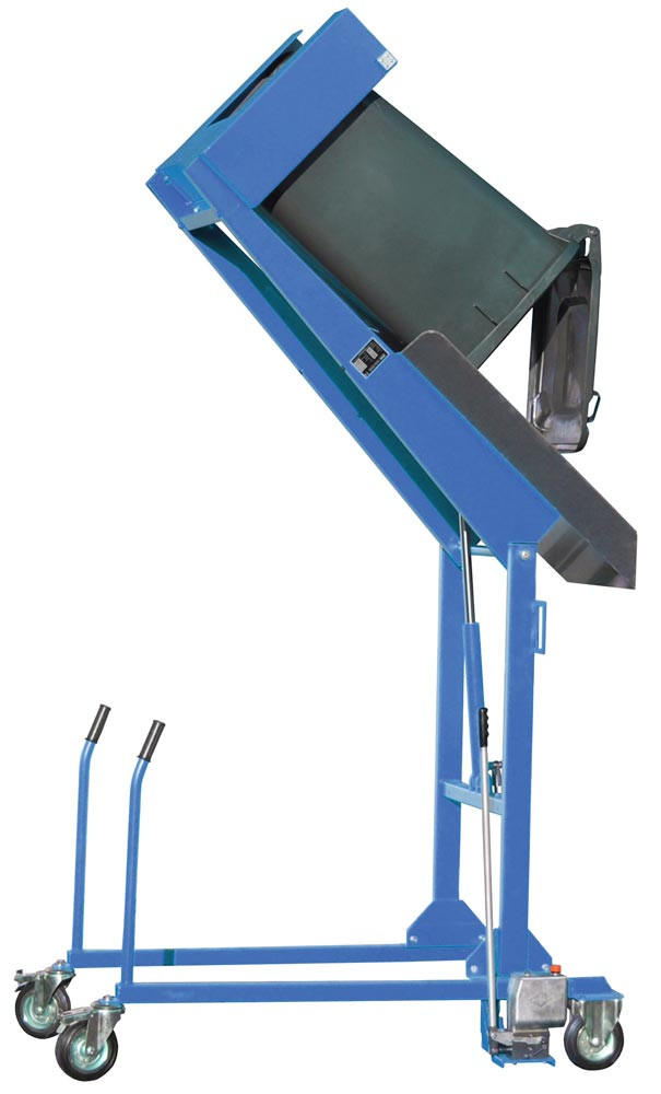 · Zur Entleerung und Reinigung von 120- und 240 Liter Mülltonnen · Kippwinkel bis 135° · Ausschütthöhe ca. 1480 mm · 2 Lenk- und 2 Bockrollen aus Vollgummi, Ø 180 mm, Lenkrollen mit Feststeller, Bauhöhe 225 mm · Traglast 110 kg