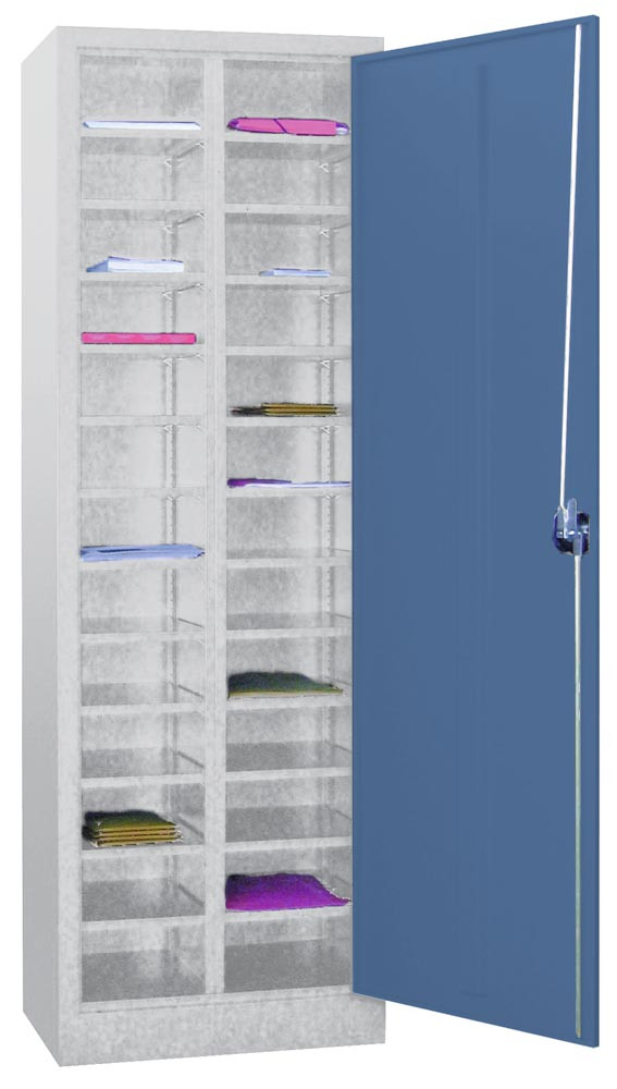 Ordnungsschrank, BxTxH 640x400x1950 mm, 2x13 verstellbare Fächer, RAL 7035/5010 lichtgrau/enzianblau