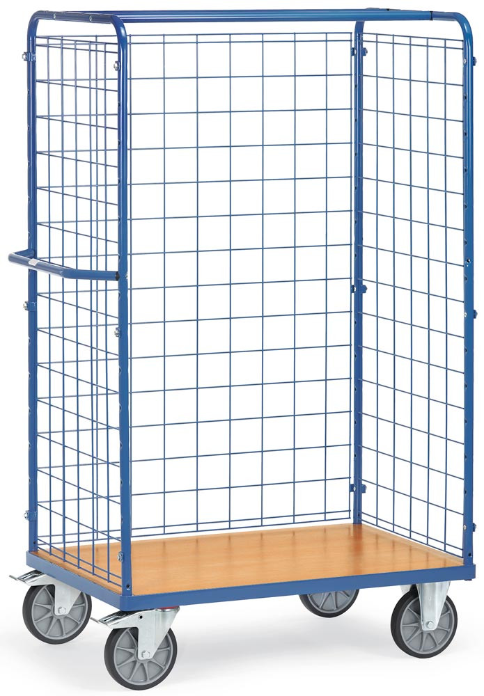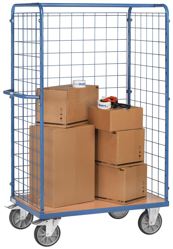 Paketwagen, 3 Gitterwände, Ladefläche LxB 1000x600 mm, Außenmaße LxBxH 1169x609x1800 mm, Traglast 600 kg, RAL 5007 brillantblau