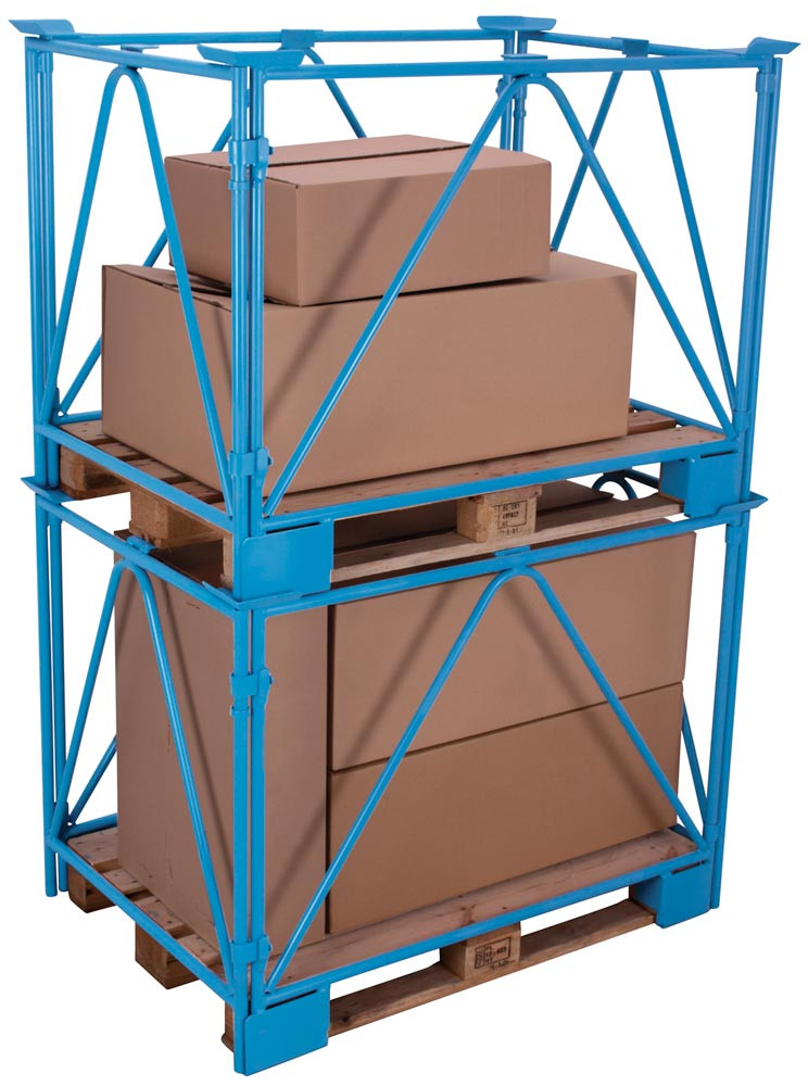 ∙ Stapelbar ∙ Für die optimale Nutzung der Palettenoberfläche ∙ Schnell montiert und bei Nichtgebrauch platzsparend gelagert ∙ Stabile Stahlkonstruktion mit senkrechten Streben aus geschweißtem Stahl für höchste Beanspruchungen ∙ Farbe RAL 5012 lichtblau · Auf Anfrage auch in RAL 7016 anthrazitgrau lieferbar