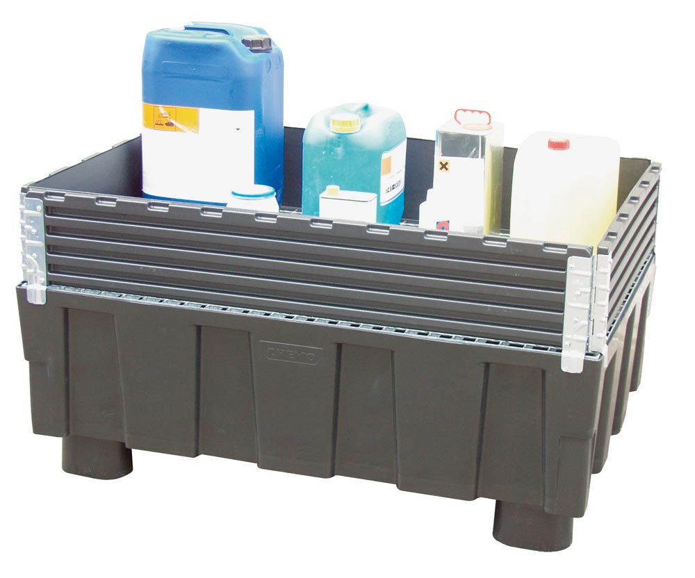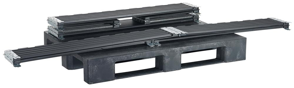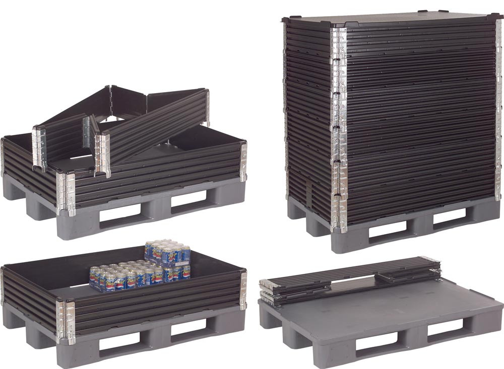 ∙ Aufsatzrahmen für Euro- und Industriepaletten ∙ Aus ABS mit verzinkten Scharnieren ∙ Diagonal klappbar ∙ Rahmenstärke 20 mm ∙ Bei Nichtgebrauch platzsparend zusammenfaltbar ∙ Farbe schwarz ∙ VE 2 Stück