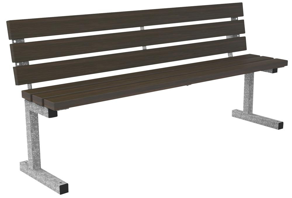 Parkbank , Füße feuerverzinkt mobil. Belattung Bambus Dunkel mit Rückenlehne, BxTxH 1770x571x470 mm