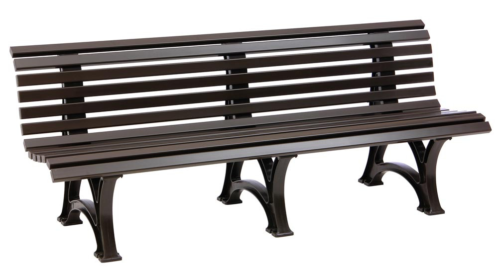 Parkbank aus Kunststoff, mit 3 Füßen, 6 Sitz- und 7 Lehnlatten 50x30 mm, Breite 2000 mm, braun