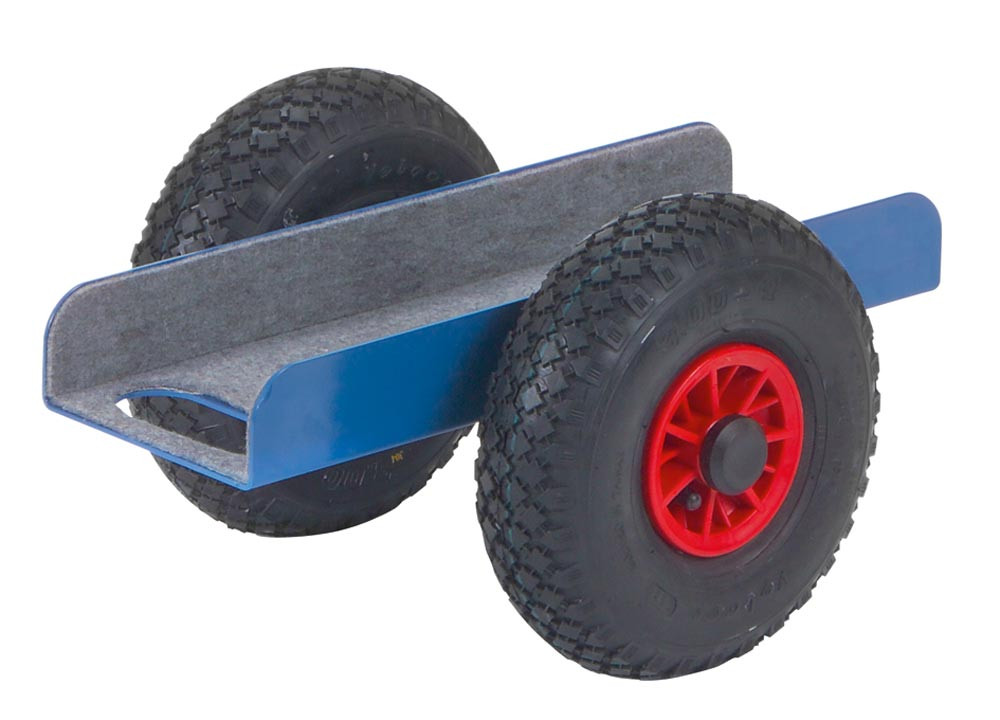 Plattenroller in U-Form, Innenflächen mit Filzbelag, Schaufelbreite 150 mm, Traglast 400 kg, Luftbereifung, RAL 5007 brillantblau